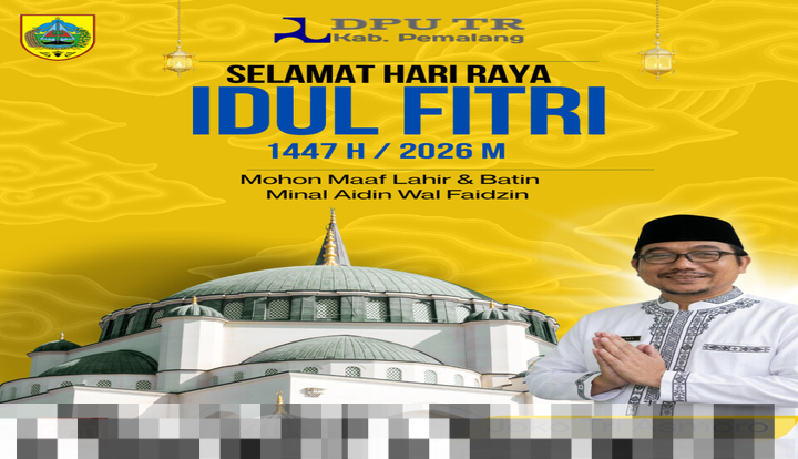 Saat hari kemenangan umat Islam tiba, Kabupaten Pemalang merayakan dengan penuh semangat dan rasa syukur. Melalui Dinas Pekerjaan Umum dan Tata Ruang (DPU TR), Kabupaten Pemalang menyampaikan ucapan selamat Idul Fitri 1447 Hijriah yang bertepatan dengan tahun 2026 Masehi.